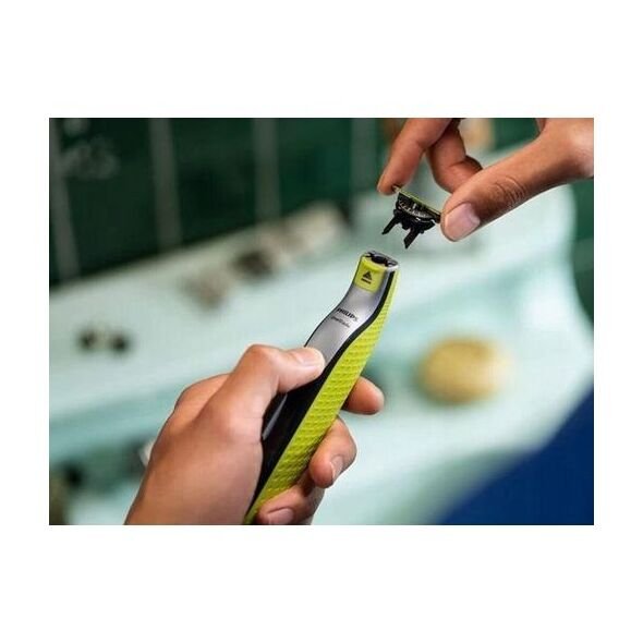 • Le nouveau rasoir OneBlade 360 taille, stylise et rase les poils de n’importe quelle longueur, en toute simplicité. Rasez et taillez facilement, même dans les zones les plus difficiles d’accès*. Plus besoin de procéder en plusieurs étapes et d’utiliser plusieurs accessoires. Le OneBlade répond à tous vos besoins.
