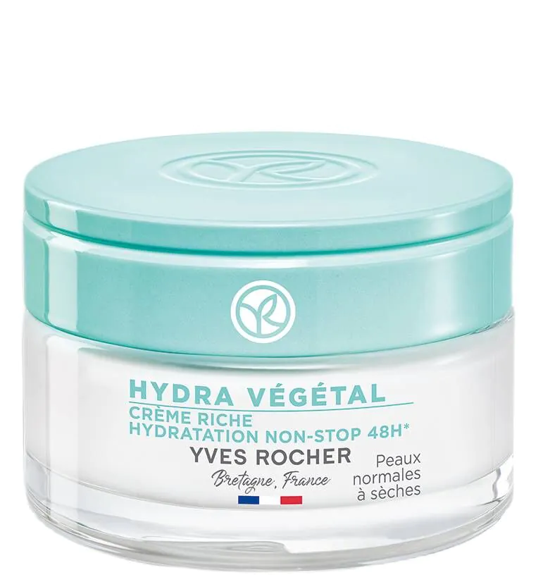 Cette crème veloutée et intensément hydratante fait partie de la gamme Hydra Végétal, recommandée pour les peaux normales à sèches. Grâce à des recherches et des tests réalisés sous contrôle dermatologique, les spécialistes Yves Rocher ont créé un produit adapté à l’hydratation des peaux de tous âges.
