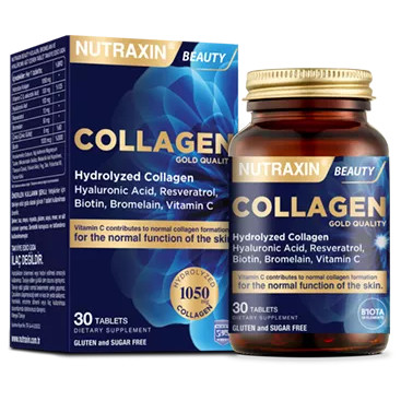 Le comprimé Nutraxin Collagen est une formulation spéciale qui offre ensemble du resvératrol, de l’acide hyaluronique et de la bromélaïne. Le collagène dans son contenu est du collagène hydrolysé qui permet une absorption facile. Il est soutenu par de la biotine et du zinc qui contribuent à la protection de la peau.