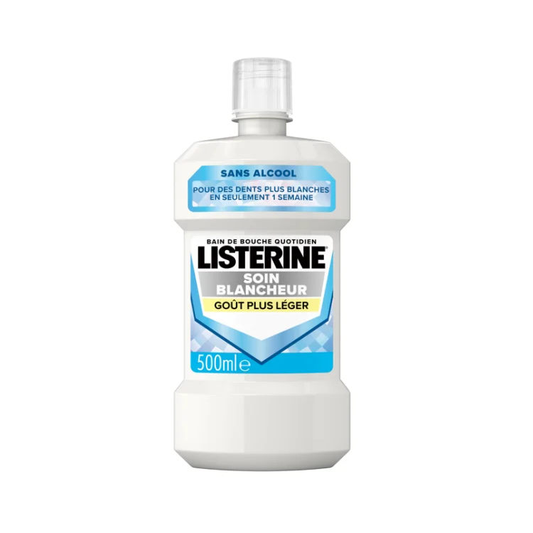 Utilisé deux fois par jour en complément du brossage, Listerine Soin Blancheur Goût Plus Léger est cliniquement prouvé pour obtenir des dents plus blanches en seulement 1 semaine.