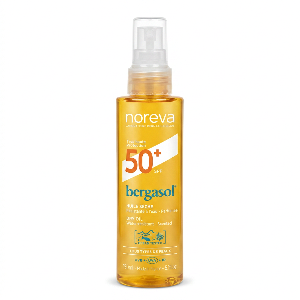 L’Huile Sèche Bergasol SPF 50+ de Noreva est spécialement conçue pour offrir une très haute protection solaire aux peaux exposées au soleil. Sa formule exclusive protège efficacement contre les rayons UVA et UVB, aidant à prévenir les coups de soleil, le vieillissement cutané prématuré et les dommages cellulaires. Sa texture sèche et non grasse pénètre rapidement, laissant la peau douce, hydratée et délicatement parfumée. Convient à tous les types de peau, même sensibles, cette huile est idéale pour celles et ceux qui recherchent une protection solaire efficace et invisible.
