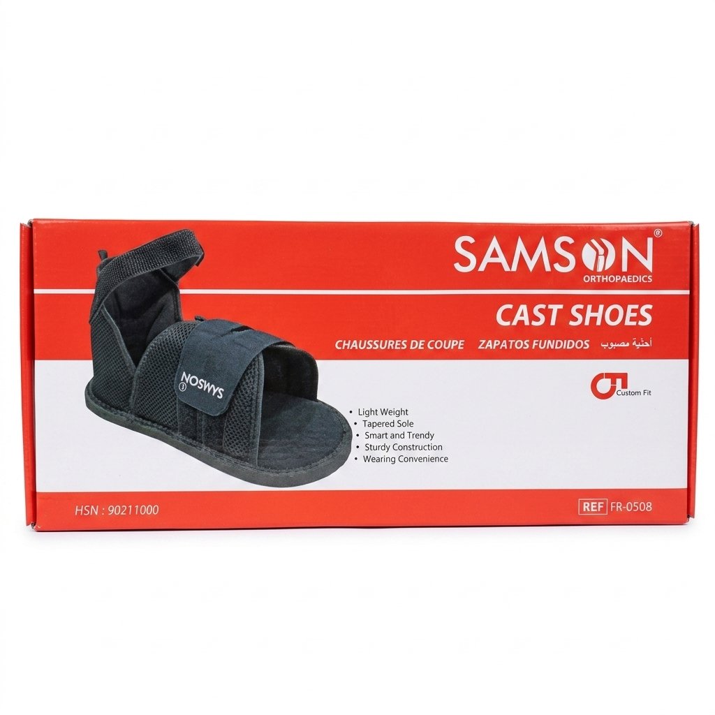 Les chaussures orthopédiques Samson Cast Shoes sont conçues pour apporter confort et maintien aux personnes portant un plâtre ou un bandage suite à une fracture du pied ou de la cheville. Elles permettent de marcher plus facilement et en toute sécurité, tout en protégeant le plâtre ou le bandage des salissures et de l’usure. Elles offrent une solution pratique et hygiénique pour continuer à mener une vie active pendant la convalescence.
