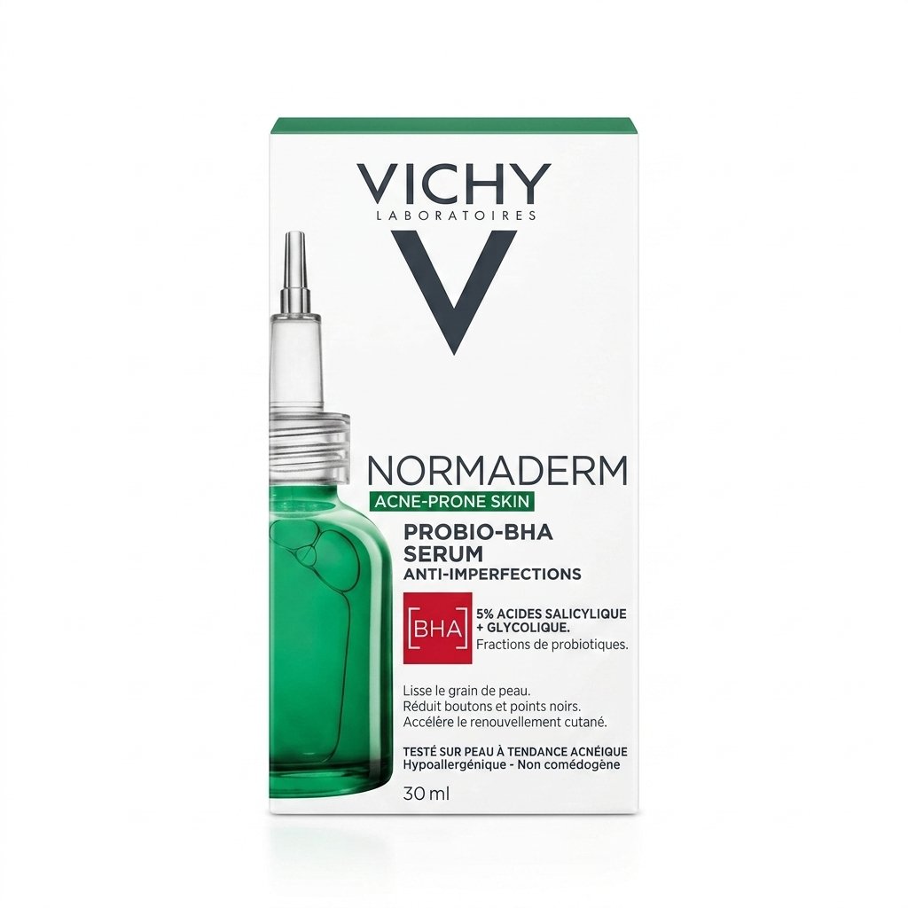 Le Sérum Normaderm Probio-BHA de Vichy est un soin ciblé pour les peaux à imperfections. Il réduit visiblement les boutons et les points noirs, tout en lissant le grain de peau. Sa formule unique, enrichie en probiotiques et en BHA, favorise le renouvellement cellulaire et aide à lutter contre les imperfections existantes, tout en prévenant leur apparition. Le résultat ? Une peau visiblement plus saine, plus nette et plus lumineuse.